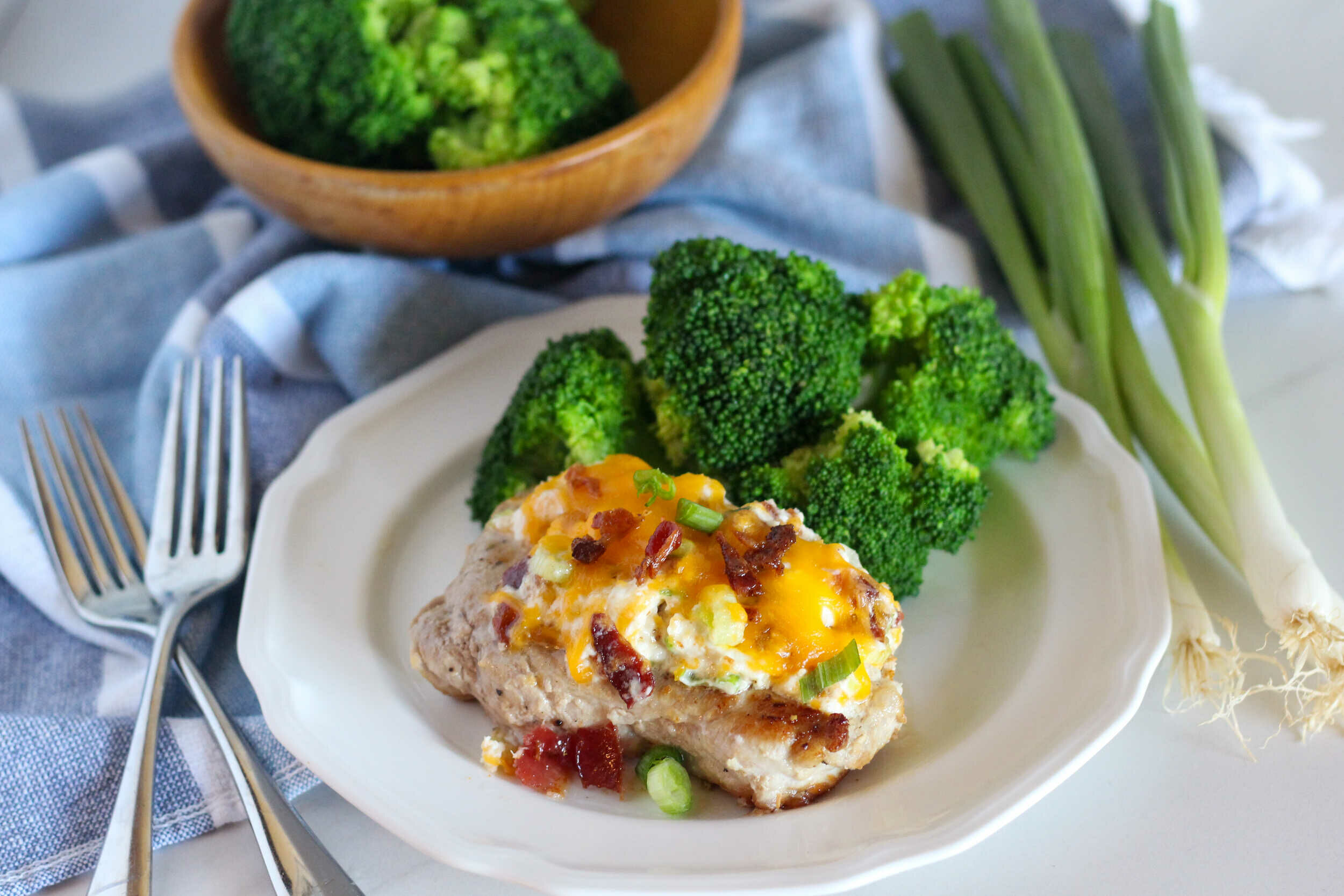 Million Dollar Pork Chops feature a baked potato-like topping with bacon crumbles, shredded cheese, and green onions; a savory symphony that is lip-smackingly good. The cream cheese and mayonnaise add the fat that’s key in making this dish worth a "million dollars." You’ll never make drab and tasteless pork again when you can have a Million Dollar Pork Chops in under 30 minutes. The time you save on making something this delicious is also worth a million bucks.
